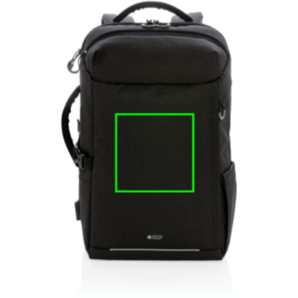 Tämä käsimatkatavarareppu sopii hyvin viikonloppumatkoille. Siinä on pehmustettu 17" tietokonetasku, joka suojaa kannettavaa tietokonettasi. Tässä mallissa on tilaa kuin matkalaukussa, mutta ei sen painoa ja epäkäytännöllisyyttä, ja siten voit liikkua helpommin ja nauttia matkakokemuksestasi. Repussa on matkalaukkuhihna, sivutasku vesipullolle ja USB A-lähtö. Päällisosassa tasku, vetokejtullinen etutasku ja RFID-suojatut taskut. AWARE™-jäljitysaineella, jolla aidosti kierrätettyjen materiaalien käyttö todennetaan. Jokaisen laukun valmistuksessa uudelleenkäytetään 35.5 PET-pulloa. 2% jokaisen myydyn Impact-tuotteen voitosta lahjoitetaan Water.org-järjestölle. PVC-vapaa.