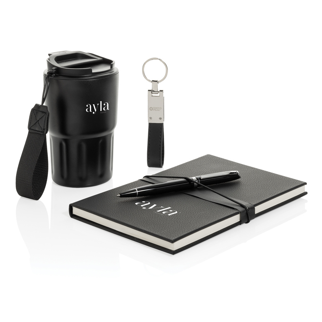 Swiss Peak deluxe liikelahjasetti + termosmuki, musta
