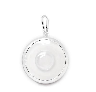 Taitettava silikonikuppi, pillerisäiliöllä ja karabiinikoukulla.