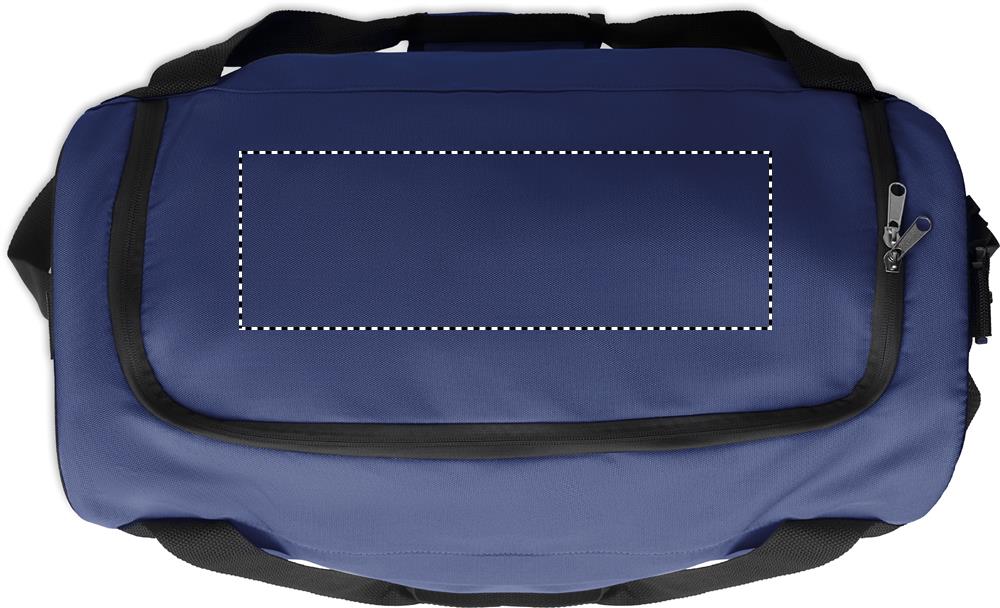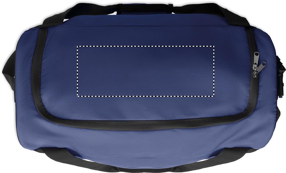 600D RPET urheilulaukku, iso vetoketjullinen etutasku, sisätasku ja säädettävä olkahihna.