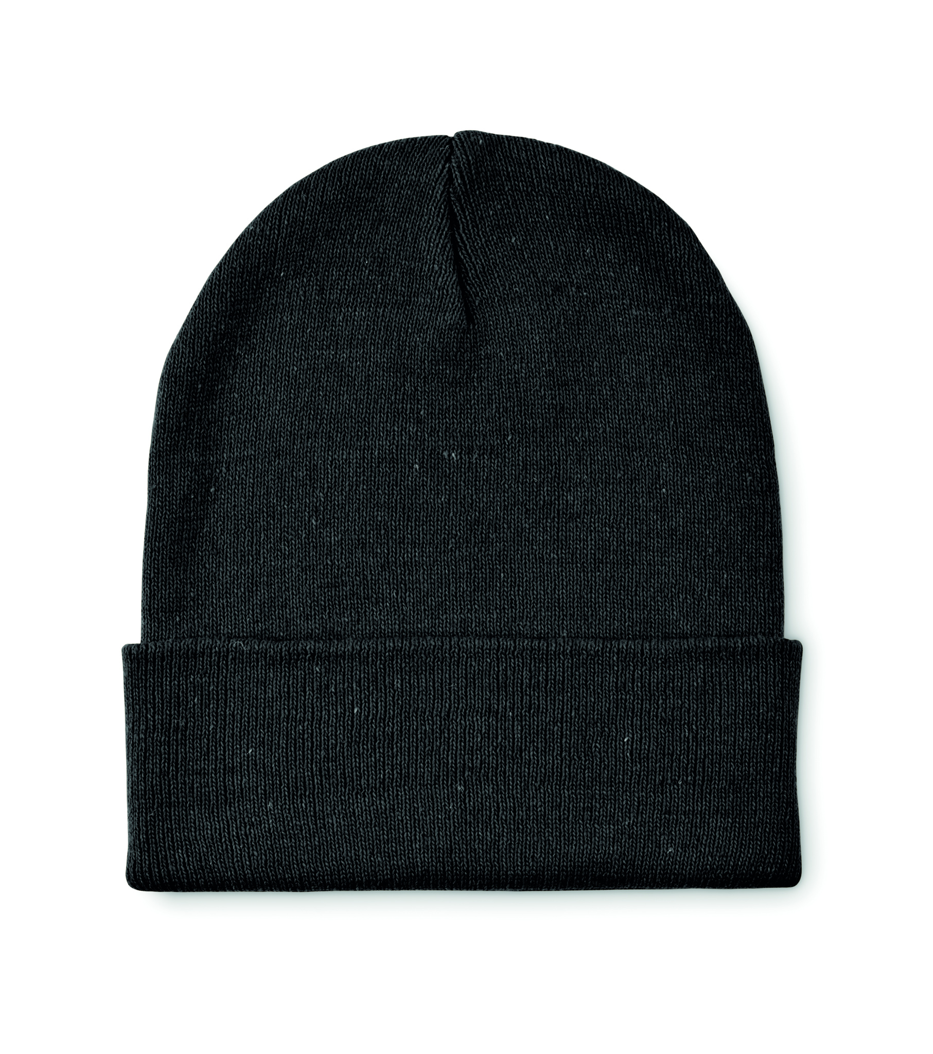 Megzta unisex kepurė-beanie iš minkšto, tampraus poliesterio (64 %) ir akrilo (36 %) su užraitotu rankogaliu. Tamprus, universalus modelis.