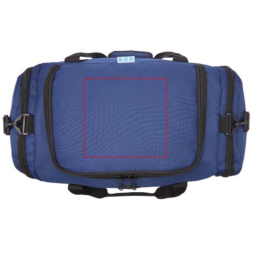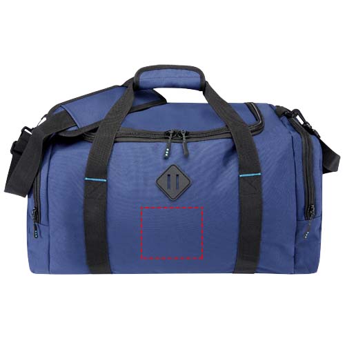 Išsaugokite vandenyną po vieną maišą! REPREVE® Our Ocean™ rankinė yra pagaminta iš perdirbto plastiko, pritvirtinto prie vandenyno. Didelis pagrindinis skyrius su užtrauktuku, dvi užtrauktuku užsegamos šoninės kišenės batams ar aksesuarams, nešiojimo rankenos ir nuimamas, paminkštintas ir reguliuojamas pečių dirželis.