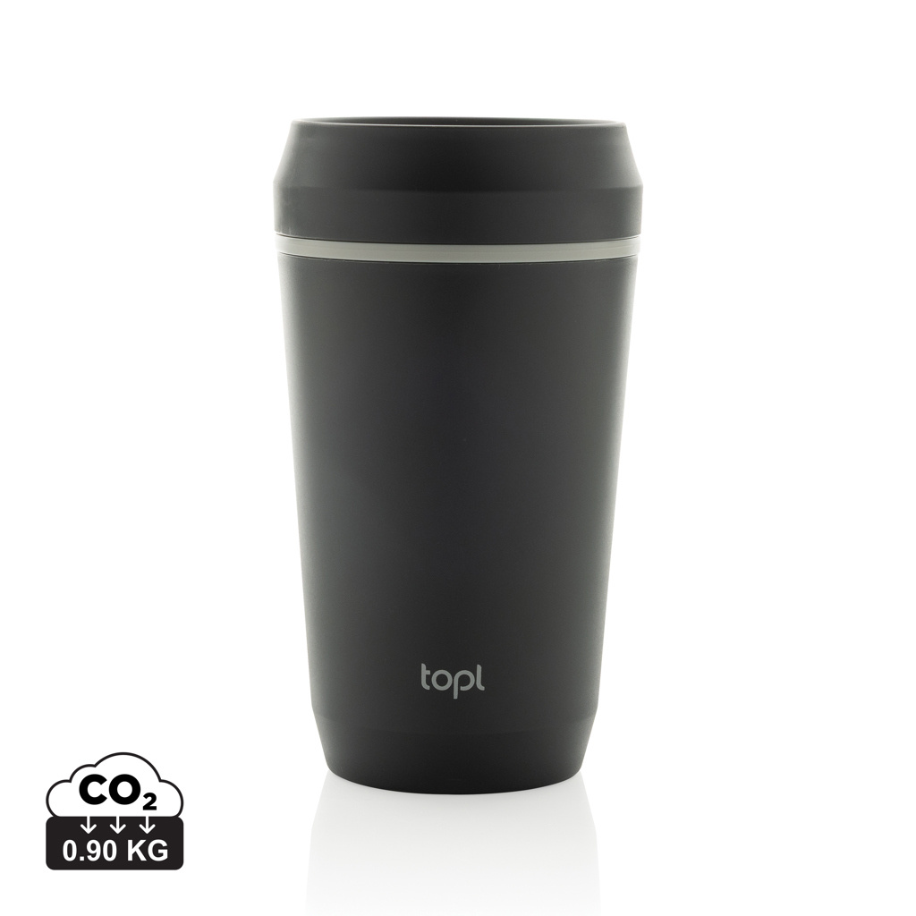 Logotrade firminės dovanos nuotrauka: „Topl“ perdirbto plastiko išsinešimui skirta stiklinė su patentuotu 360 laipsnių dangteliu, 354 ml