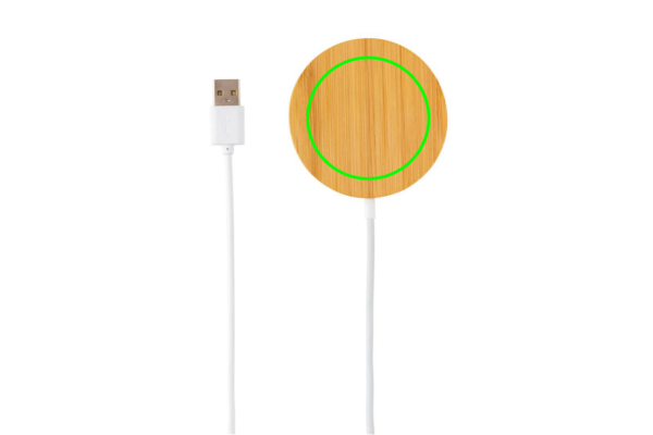 Logotrade dāvanas foto: 10 W bambusa magnētiskais bezvadu lādētājs