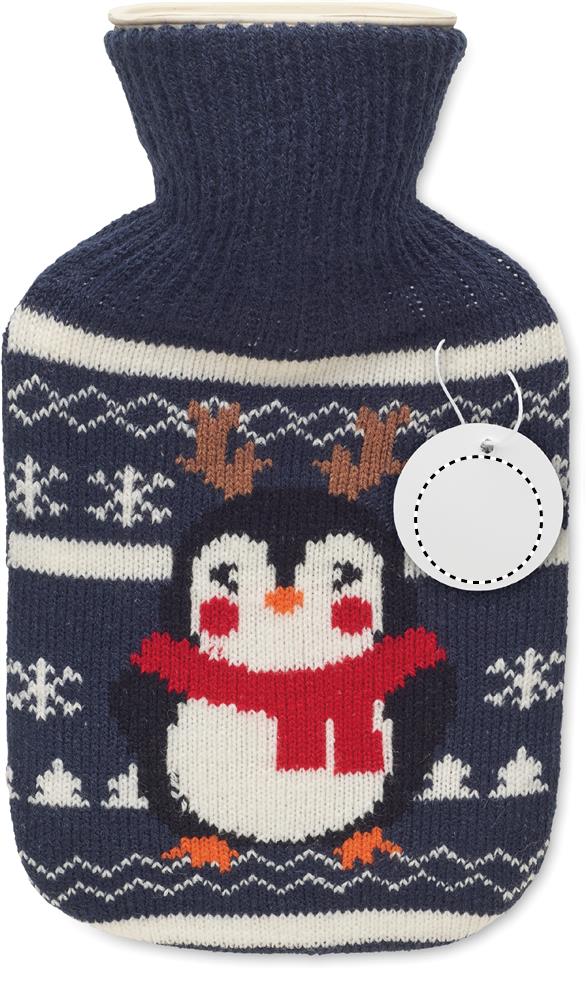 Karstā ūdens pudele ar kreklu Ziemassvētku rakstā. Izmanto, lai nodrošinātu siltumu, parasti gultā, bet arī siltuma pielietošanai noteiktai ķermeņa daļai. 250 ml tilpums.