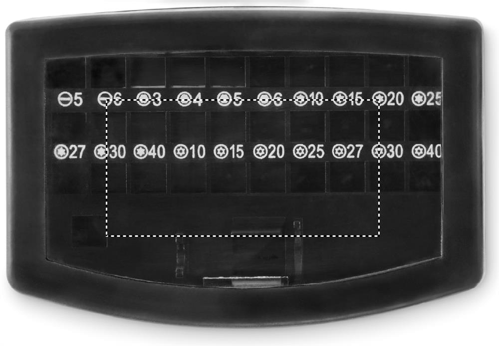 32 piece assorted screwdriver bit set with rotative clip holder.