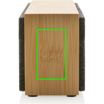 Роскошный динамик мощностью 10 Вт с чистым звуком и мощными басами. Внешний корпус изготовлен из бамбука, сертифицированного FSC на 100%. Пластиковые компоненты изготовлены из переработанного АБС-пластика, сертифицированного по стандарту RCS (Recycled Claim Standard). Общее содержание переработанных материалов: 23 % от общего веса изделия. Сертификация RCS гарантирует полностью сертифицированную цепочку поставок переработанных материалов. Динамик оснащен Bluetooth 5.1 для легкой и плавной работы на расстоянии до 10 метров и низкого энергопотребления. Аккумулятор емкостью 1200 мАч обеспечивает до 6 часов воспроизведения и может быть полностью перезаряжен за 2 часа. С функцией подхвата и микрофоном для ответа на (видео) звонки. Упакован в крафт-бокс FSC mix. Включает сертифицированный RCS переработанный кабель для зарядки TPE.