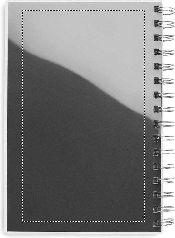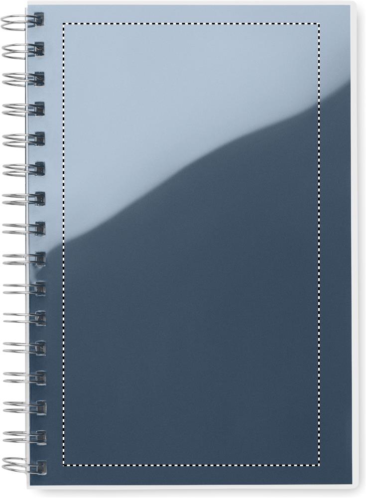 Блокнот формата A5 на спирали в обложке из переработанного пластика (RPET). 80 линованных страниц.