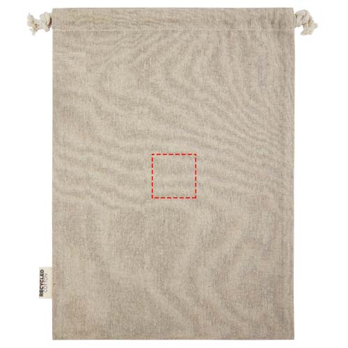 Подарочная сумка из хлопка, переработанного по стандарту GRS, с хлопковым шнурком для затягивания. Идеально подходит для подарков или хранения предметов. Размер: 30 x 42 см.