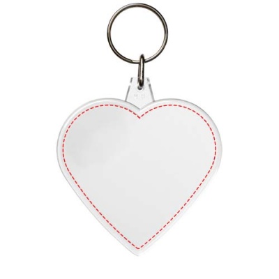 Прозрачный брелок в форме сердца с металлическим разъемным кольцом. Металлическая петля для крепления кольца представляет собой плоский профиль, что делает его идеальным для пересылки. Размеры печатной вставки: 5,8 см x 5,0 см.