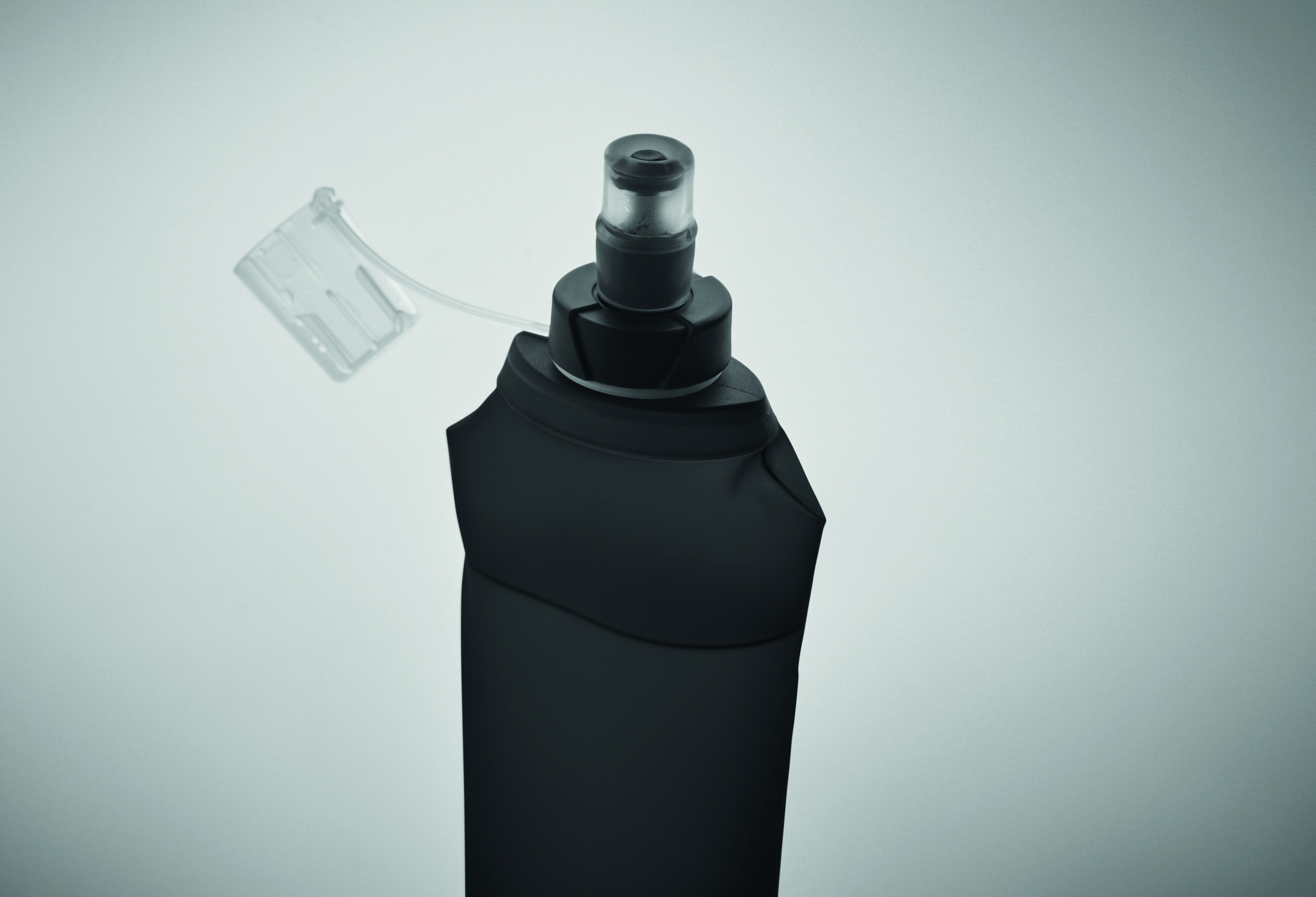 Foldable TPU water bottle with bite valve. Lightweight and portable design, ideal for outdoor use. Leak-free. Capacity 500 ml.