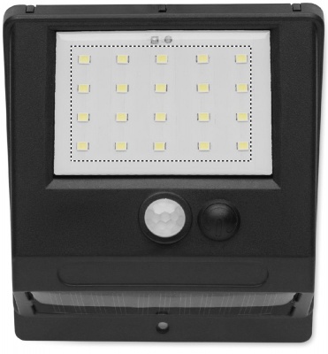 Фонарь на солнечной батарее с 20 светодиодами из полипропилена с датчиками движения и ночи. Датчик движения PIR (пассивный инфракрасный датчик). Ночной датчик CDS. Степень защиты: IP 44. Емкость аккумулятора: 800 мАч.