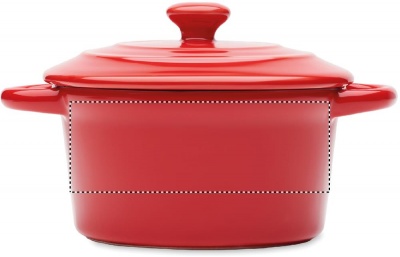 Небольшой керамический набор для фондю с крышкой для двоих. Включает 2 металлические вилки с деревянными ручками. Свеча не входит в комплект. Объем: 300 мл.