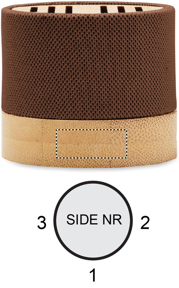 Пластиковая беспроводная колонка 5.0 с бамбуковыми деталями. Индикация зарядки. Li-ION аккумулятор емкостью 300 мАч. В комплекте порт для карт памяти SD и кабель AUX/ USB. Функция громкой связи. Выходные данные: 3 Вт, 3 Ом и 5 В. Время воспроизведения около 3 ч.