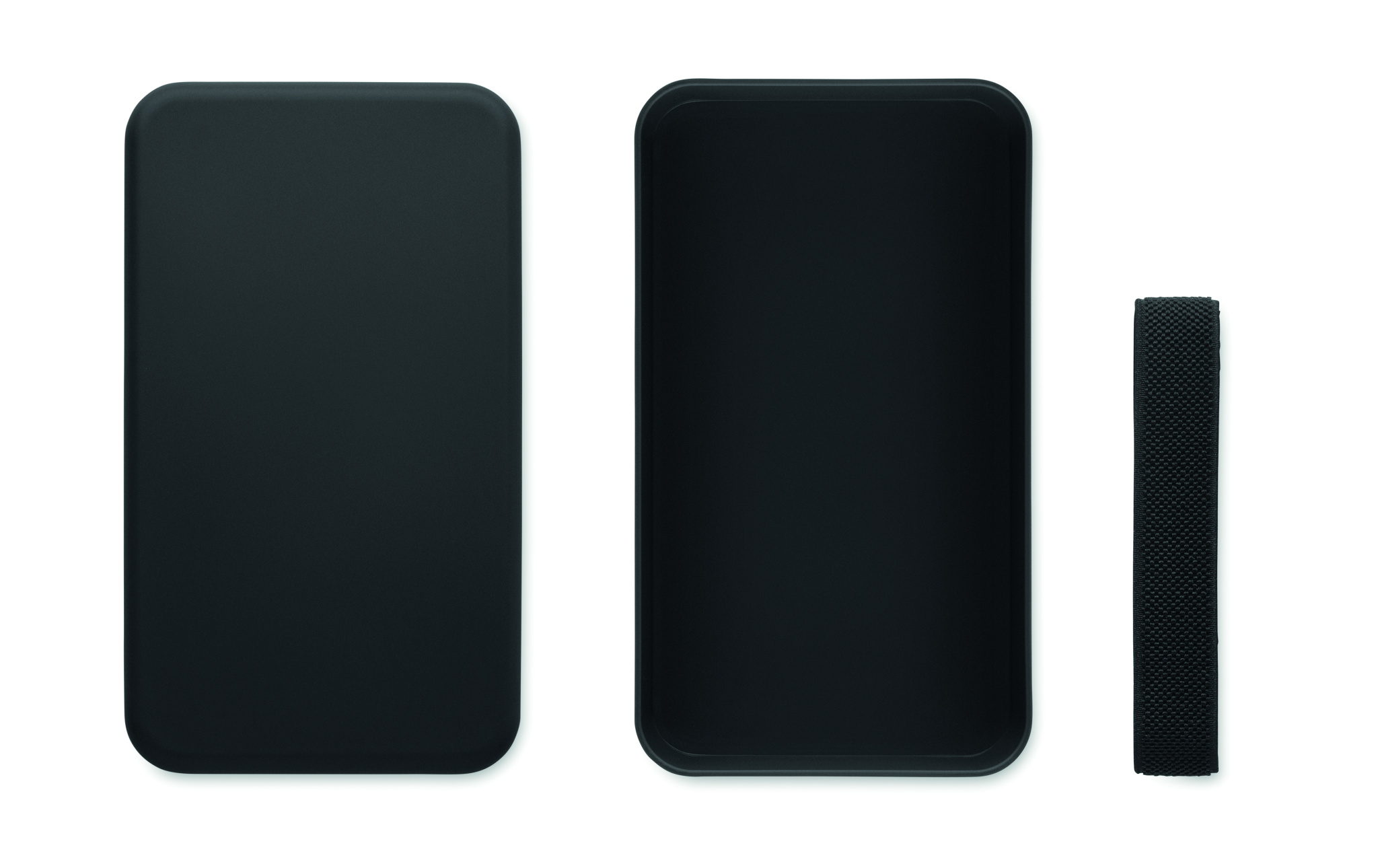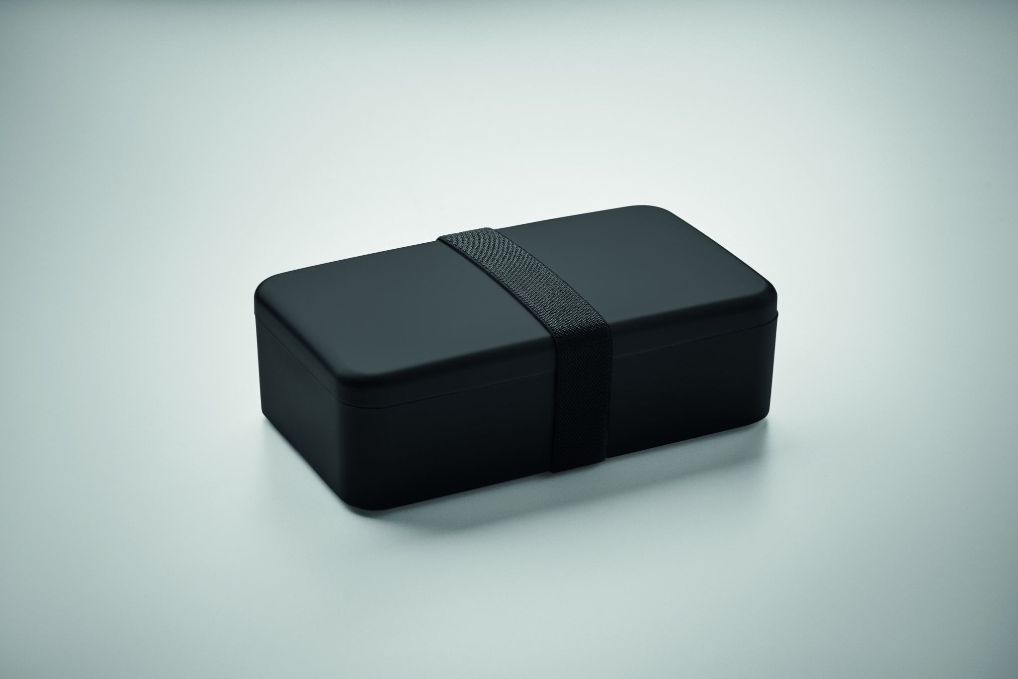 Lunch box in PP with RPET elastic band closure. Capacity: 750 ml.