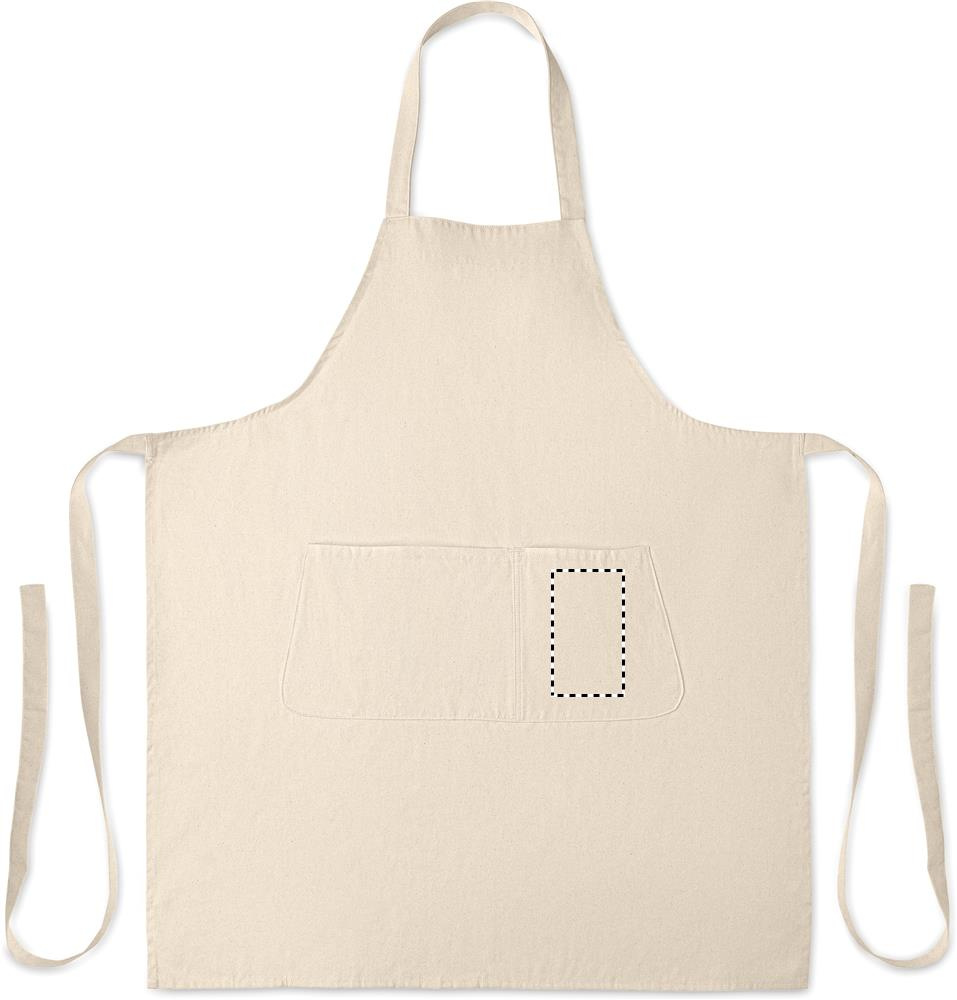 Adjustable bib apron with 1 large front pocket with 2 compartments in 240 gr/m² organic cotton. With adjustable button on the neck strap.