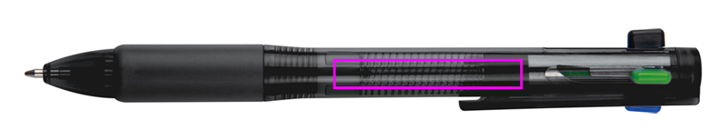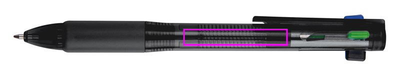Пластиковая шариковая ручка с 4 цветными пишущими стержнями (синий, черный, красный и зеленый). Ваш логотип будет напечатан под зажимом.