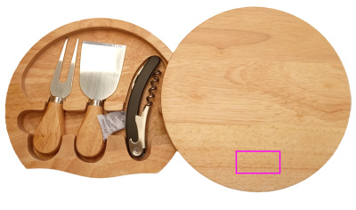Сырная доска из дерева (каучуковое дерево), в комплект входит сырный нож, сырная вилка и нож официанта. На доске гравируем ваш логотип.