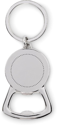 Metal bottle opener key ring with bamboo detail.
