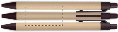 Ручка шариковая в корпусе из картона. Фурнитура является сплавом из 40% кофейной кожуры и 60% пластика АБС.