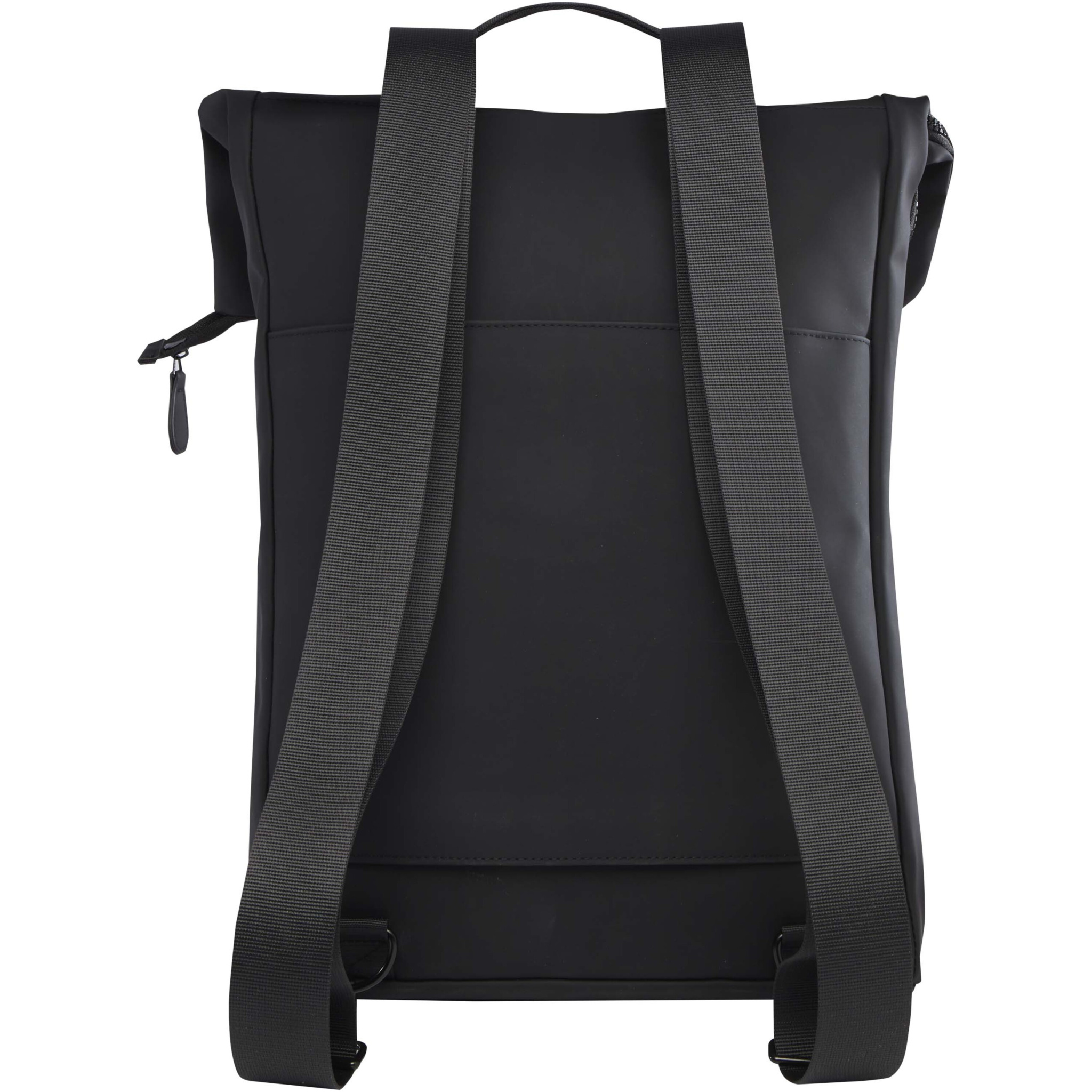 Рюкзак о сворачивающимся верхом Turner на 51% изготовлен из переработанного пластика, сертифицированного по стандарту GRS, а подкладка изготовлена из 100% переработанного ПЭТ-пластика, сертифицированного GRS. Рюкзак имеет мягкое отделение для ноутбука с диагональю 15,6 дюйма, мягкое отделение для планшета, внутренний ремешок для хранения бутылки с водой и карман на молнии для мелочей. Основное отделение имеет сворачиваемый верх, который можно надежно застегнуть с помощью пряжки. Кроме того, багажный ремень на задней стороне позволяет легко прикрепить рюкзак к чемодану на колесиках, что делает его удобным спутником в путешествии. Объем: 12 литр.