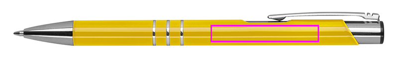Полностью лакированная металлическая шариковая ручка с 3 декоративными кольцами и синим стержнем большой емкости. Ваш логотип будет выгравирован справа от зажима.