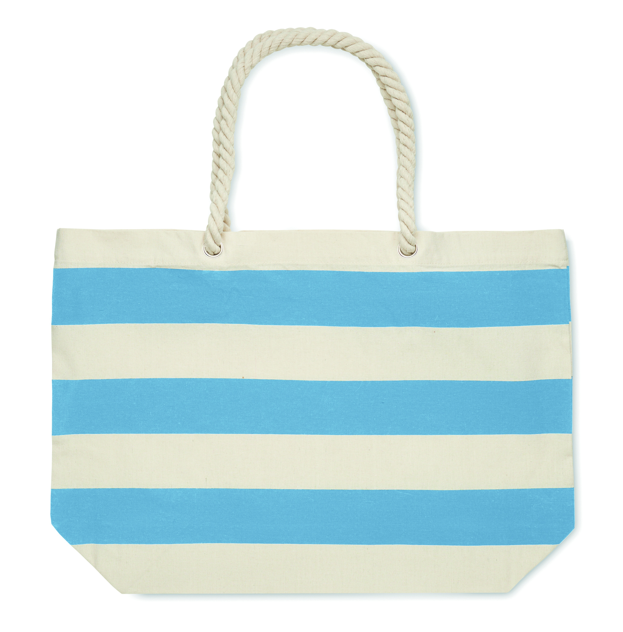 Полосатая пляжная сумка или сумка для покупок из хлопка с ручкой. 220 гр/м².