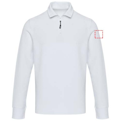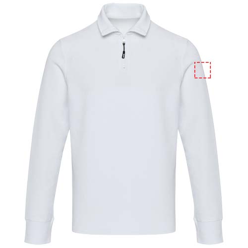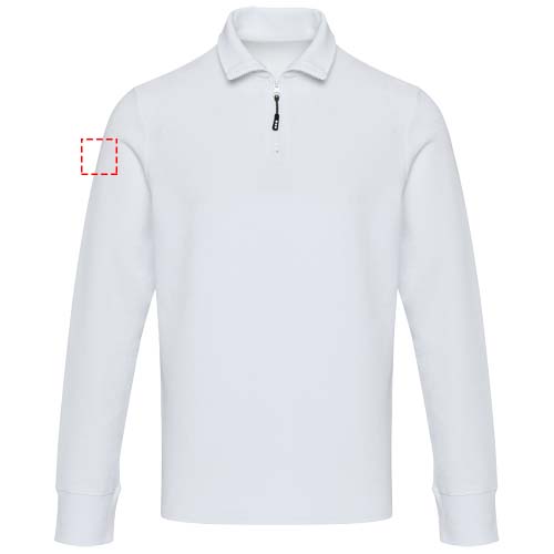 Унисекс-джемпер Zeus с длинными рукавами и застежкой-молнией до середины бедра изготовлен из пике-трикотажа плотностью 245 г/м² из 100% хлопка для ношения круглый год. Изделие отличается изысканной отделкой, выполненной с помощью тесьмы на горловине из той же ткани для дополнительной прочности, а также боковыми разрезами со вставками из той же ткани для большей подвижности. Основная этикетка с термопереносом обеспечивает комфорт без этикеток. Эта одежда, оснащенная технологией отслеживания AWARE™, включает цифровой паспорт продукта для подтверждения прозрачности и экологичности.