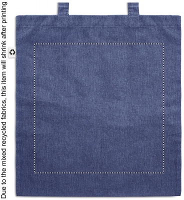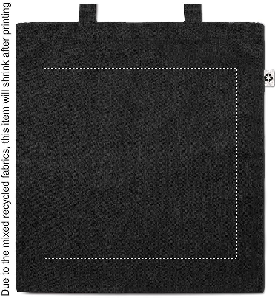 Tygkasse i tvåfärgad återvunnen bomull och återvunnen polyester med långa handtag (20%/80%). Ca 140gr/m². Den här artikeln kan krympa efter tryckning.