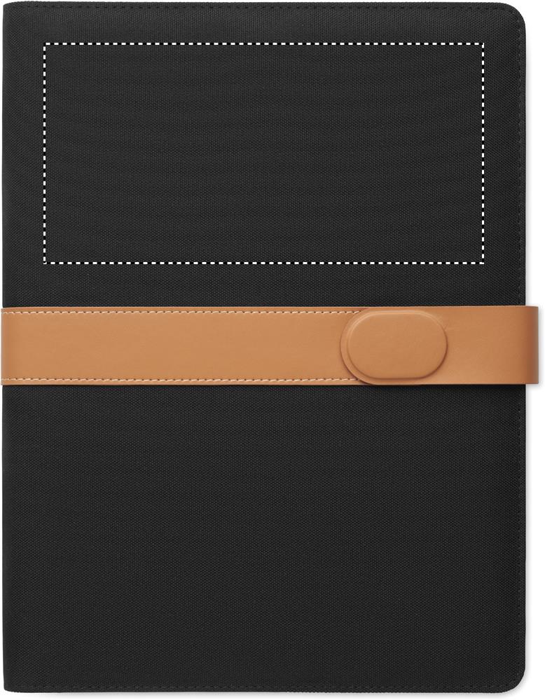 A4 konferensmapp i RPET med detaljer i konstläder. Utbytbara A4-anteckningsblock, 30 linjerade sidor med återvunnet papper. Pennhållare. 4 korthållare, 3 små fickor och ett stort fack. Magnetisk stängning.