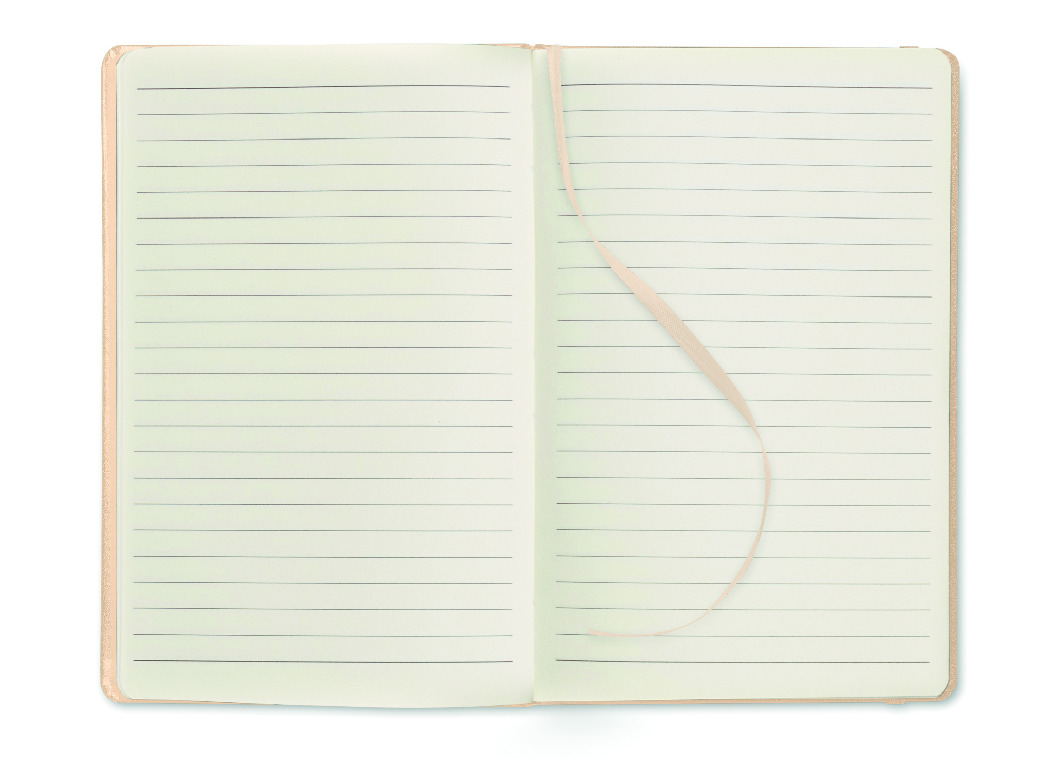 A5 Anteckningsbok med PU omslag och 96 linjerade inbundna sidor och med gummiband.