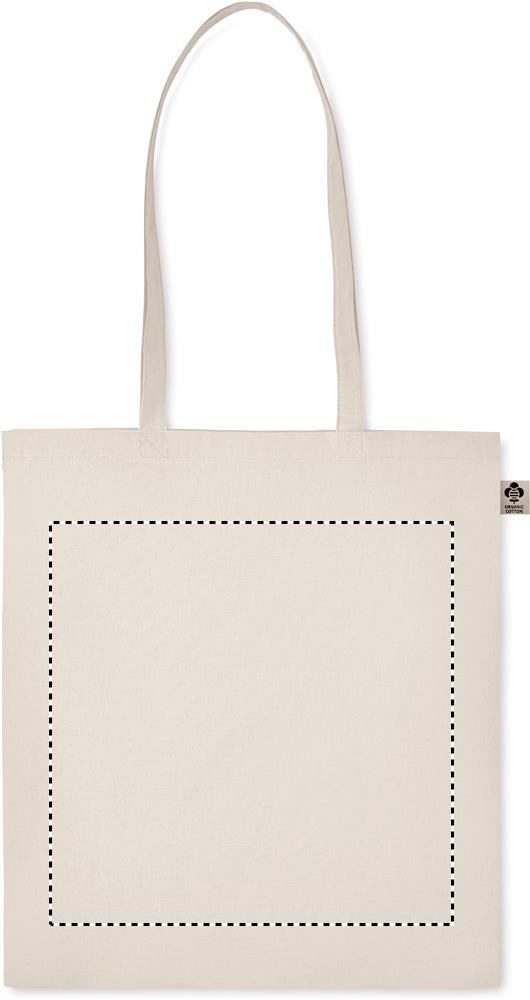 Kasse i ekologisk bomull med långa handtag. 105 gr/m².