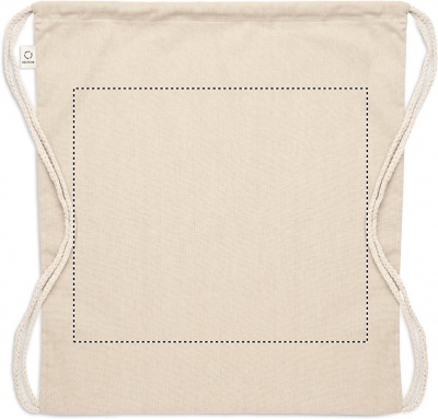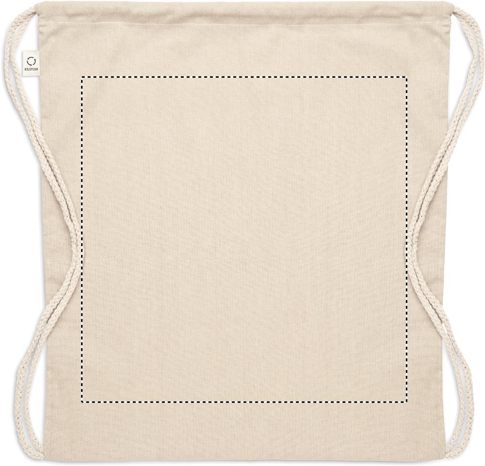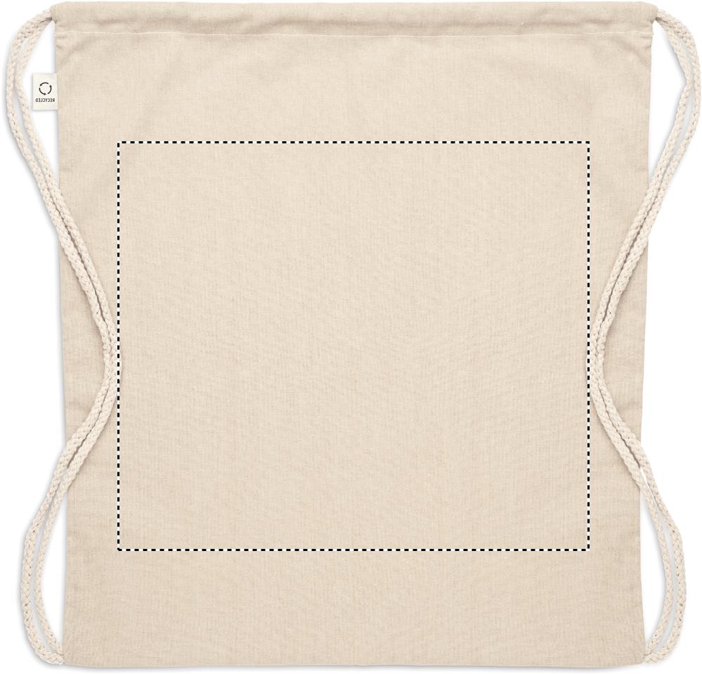 Gymnastikpåse i bomull av återvunna textilier (70 %) och RPET (30 %). 140 gr/m².