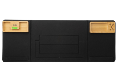 Se till att var sak har sin plats på ditt skrivbord med denna A5 AWARE™ RPET hopvikbara skrivbordsorganisatör. På insidan finner du en bambu 10W trådlös laddare med pennhållare och ett enkelt tredelat laptopställ (max 17"). Pennhållaren och den trådlösa laddaren hålls på plats med hjälp av magneter. Insida och utsida i 100% återvunnen RPET med AWARE™ spårämne. 120cm micro USB kabel i RCS återvunnen TPE medföljer. Med AWARE™ spårämne som bevisar användandet av återvunna material. Denna produkt har sparat 6.6 liter vatten och återanvänt 11 plastflaskor. 2% av intäkterna för varje såld Impact-produkt kommer att doneras till Water.org. PVC-fri.