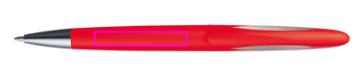 Kulspetspenna i plast med roterande mekanism och blåskrivande plastpåfyllning. Vi trycker din logotyp på skaftet.