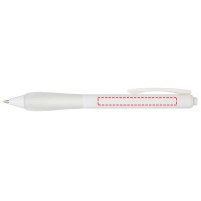 Kulspetspenna av återvunnen plast med gummerad pennkropp och grepp av TPR. Bläckfärg: Svart. Skrivlängd: 1000 meter. NIB-storlek: 1,0 mm.