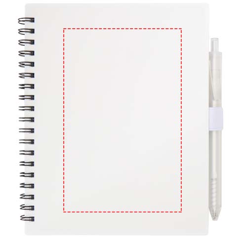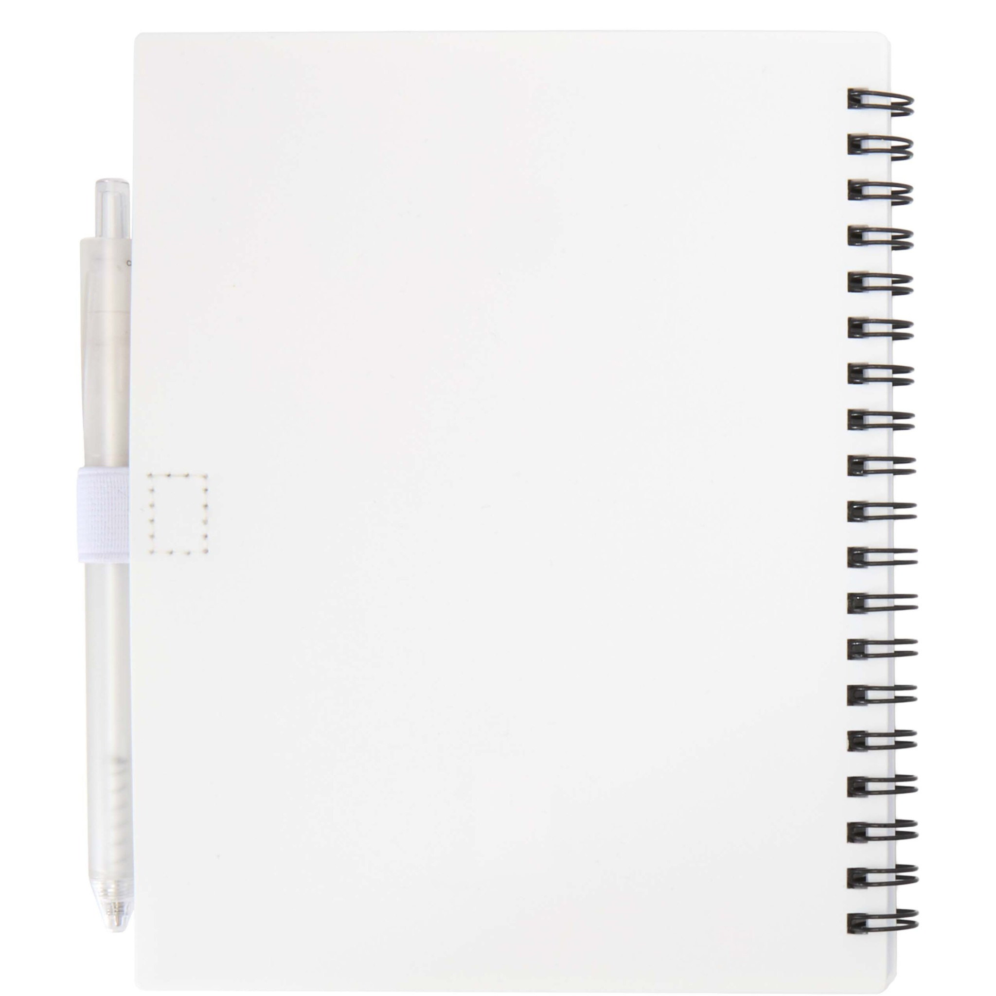 Niove set bestående av anteckningsbok med mjukt omslag av återvunnen plast och kulspetspenna (blått bläck), Vit