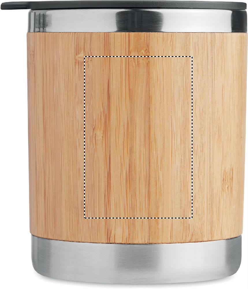 Mugg med dubbelvägg i rostfritt stål med bambu hölje och stängning för drickshålet. Kapacitet 250 ml.