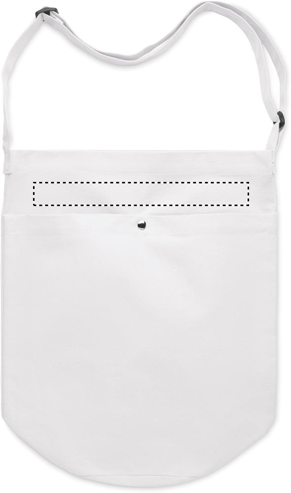 Kasse i canvas med lång justerbar axelrem och stor framficka med snäpplås. Inkluderar innerficka. 270 gr/m².