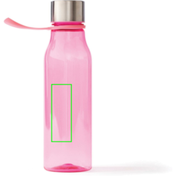 Vattenflaska i BPA-fri tritanplast. Öglan på locket gör den enkel att hänga på väskan samt att den nätta formen gör att den passar i de flesta mugghållare. Flaskan är enkel att rengöra. Passar bra att lägga ett tryck på.